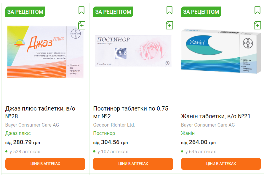 Гормональні контрацептиви продають за рецептом (скриншот tabletki.ua)