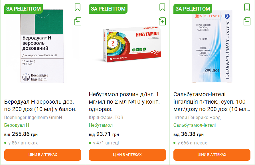 Більшість препаратів для інгаляцій, в тому числі Беродуал – за рецептом.