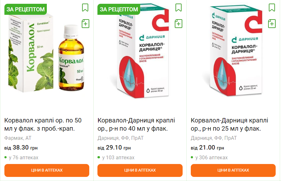 Корвалол і валокордин у 50 мл флаконах продають за рецептом, у менших флаконах – без.