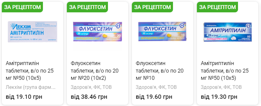Препарати, які призначають при депресивних станах такі як Золофт, Флуоксетин, Амітриптилін, Міасер, Есциталопрам і т.д. продаватимуть за рецептом.