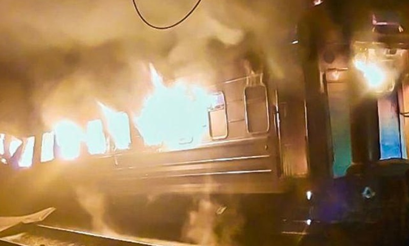 Унаслідок влучання сталася пожежа: горів один вагон та частково — ще один.