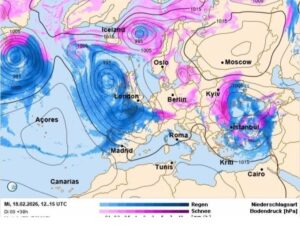 Цього разу його траекторія пролягатиме трохи південніше, тому захід та північ 18-го лютого він зачепить, але, сподіваюсь, не надто сильними опадами. Хоча сніг, ожеледиця та рвучкий вітер завтра тут очікуються.
