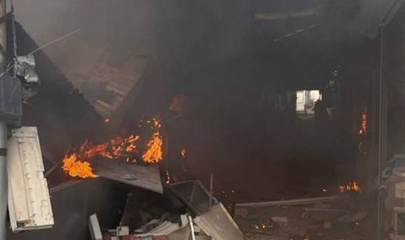 Пошкоджено торгові павільйони на ринку, магазин. Внаслідок атаки сталася пожежа.